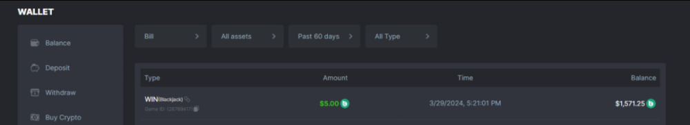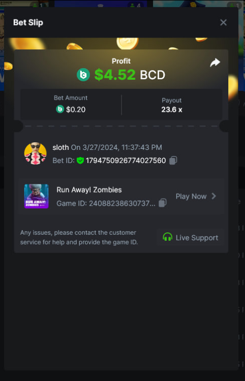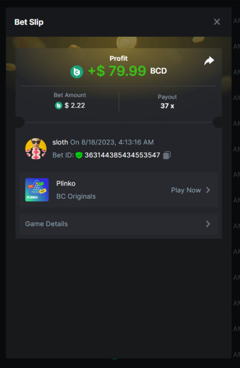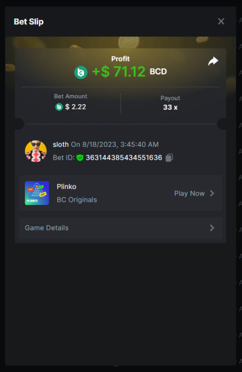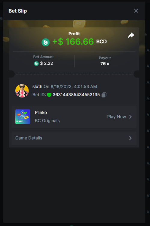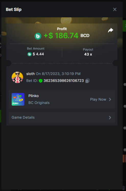 Total Points 30/30 EASY 1 https://bc.game/#/sd/11VO77GATVCCXF 2 https://bc.game/#/sd/11VO36FOYPH48V 3 https://bc.game/#/sd/11VKFQKFWOAMU7 4 https://bc.game/#/sd/11VKM1H288HRNB 5 https://bc.game/#/sd/11VKG5J0NO13JB 6 https://bc.game/#/sd/11VKLQZGL749P7 7 bet id 2388541117525266478 8 https://bc.game/#/sd/11VKH3DCZZR72Z 9 https://bc.game/#/sd/11VKHRDODKPPY3 10 Both done. MEDIUM 1 https://bc.game/#/sd/11VKEFPNPAVZIZ 2 https://bc.game/#/sd/11VKDDJO482EBN 3 https://bc.game/#/sd/11VKE9CI6RTUE7 4 bet id 2388491552407298304 5 https://bc.game/#/sd/11VJN7D9T73JFR 6 https://bc.game/#/sd/11VKERZ2NQWVER 7 * There is a problem with blackjack bet slips. all of the bets in history shows as 0 value in bet slip.blackjack hand is visible at bet slip game info ss .i also added ss of bill showing the bet with game id. bet is 2 bcd. Thank you https://bc.game/#/sd/11VOQRXMFX4X27 8 https://bc.game/#/sd/11VLQJAKYSW9P7 9 https://bc.game/#/sd/11VLS5NLHTDLWB 10 https://bc.game/#/sd/11VLWDXNBYDIRB HARD 1 https://bc.game/#/sd/11VJO4ADTOF1NJ 2 https://bc.game/#/sd/11VMPUDVWNOGCN 3 https://bc.game/#/sd/11VMKBWDTF65NF 4 https://bc.game/#/sd/11VOIUG63W4GGV 5 https://bc.game/#/sd/11VO9PCVEW7R4B 6 https://bc.game/#/sd/11VOO6VJNW78Y3 7 https://bc.game/#/sd/11VMKUB6AK9HJ7 8 https://bc.game/#/sd/11VODUXB33W0GV 9 https://bc.game/#/sd/11VOH4GG3LZ55Z 10 bet id 2385379590152524000