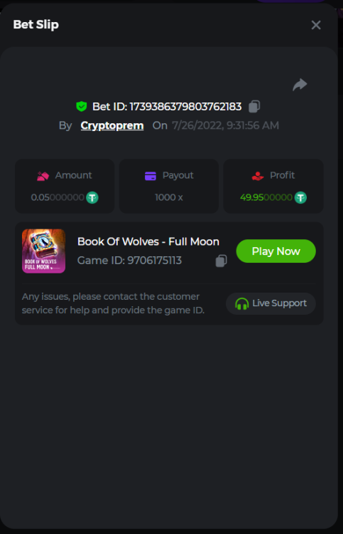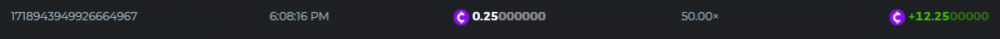 13. Betting ID: 1719831209635249024 Aloha king elvis 102.80x Betting ID: 1719854577341462535 Candy Monsta 134.25x