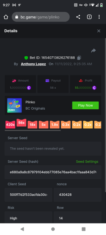 • Favorite Game Plinko